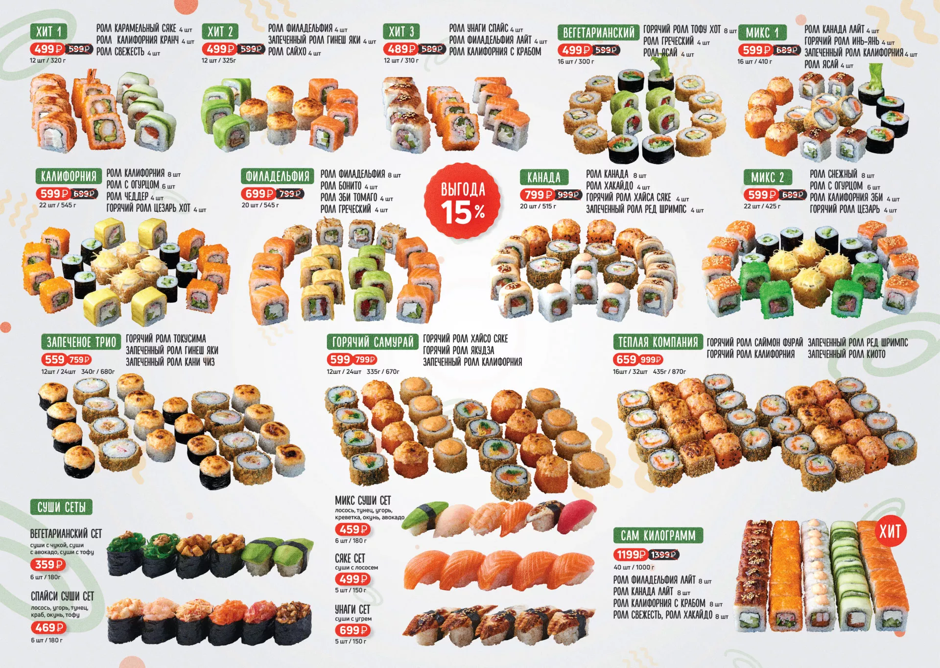 Оформление меню для торговых точек суши-бара «Roll Wok Club» в Кусе. Что является решающим фактором, влияющим на решение потратить деньги в ресторанном бизнесе, если клиент стоит уже у стойки заказа? Конечно, меню. Мы постарались сделать его максимально аппетитным!